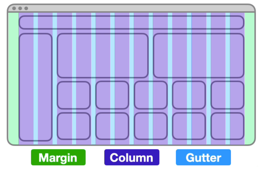 - Margin, Column, Gutter 세 가지 요소로 구성됨